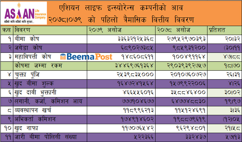 एशियन लाइफको मुनाफा २१% ले बृद्धि, जीवन बीमा कोषमा ३३ अर्ब, अन्य सूचांकमा कस्तो ?
