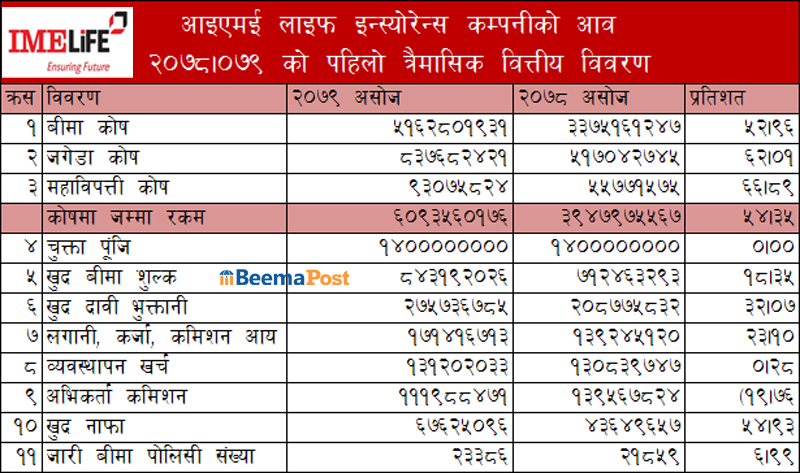 आइएमई लाइफ इन्स्योरेन्सको मुनाफा ५४ प्रतिशतले बढ्यो, बीमाशुल्क आर्जन कति ?