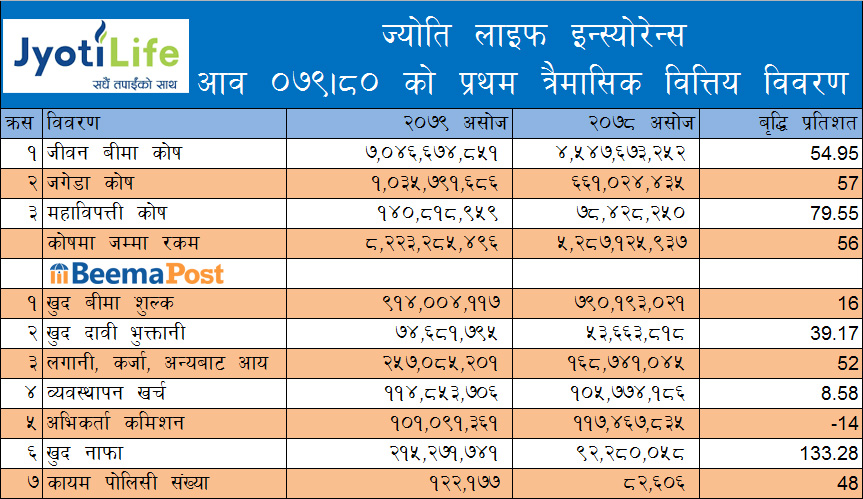 ज्योति लाइफले पहिलो त्रैमासमै कमायो २१ करोड मुनाफा, सात अर्बको जीवन बीमा कोष, इपिएससहित अन्य सूचांक कस्तो ?