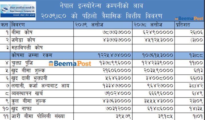 नेपाल इन्स्योरेन्सको खुद बीमाशुल्क आर्जन र मुनाफामा सामान्य सुधार