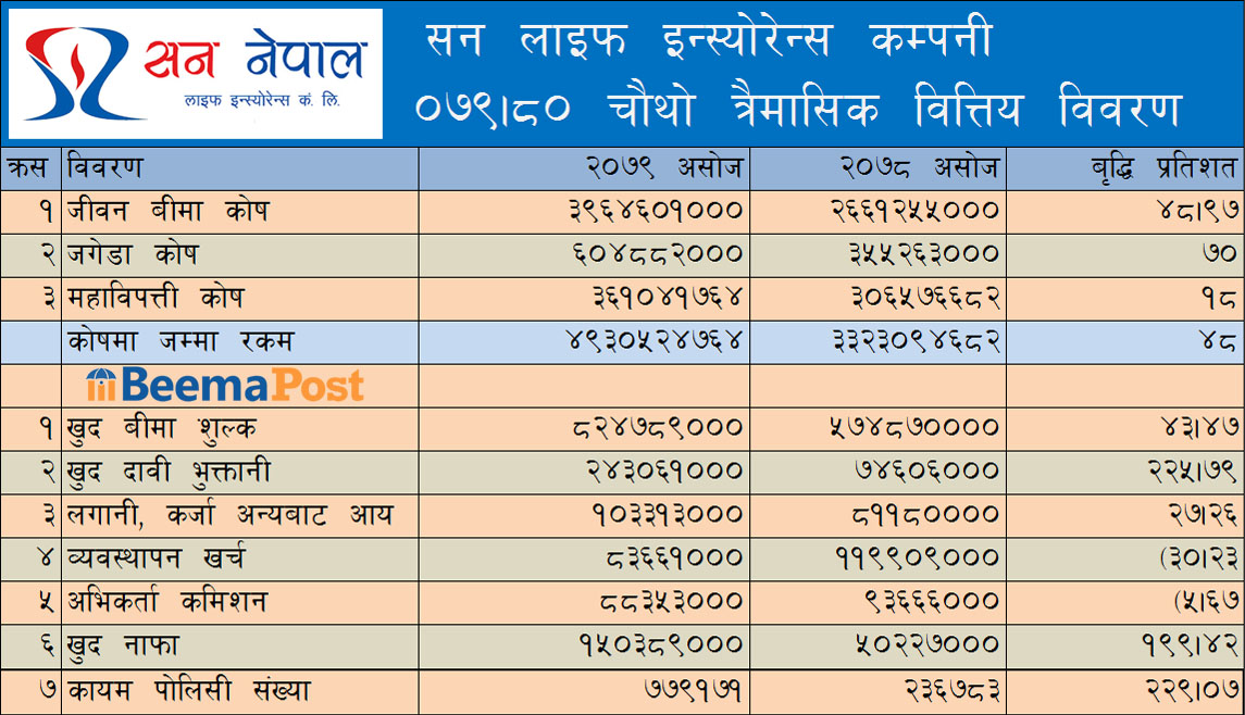 पहिलो त्रैमासमा सन नेपाल लाइफको उल्लेख्य प्रगति, जीवन बीमा कोष र मुनाफा दुवै बढ्यो