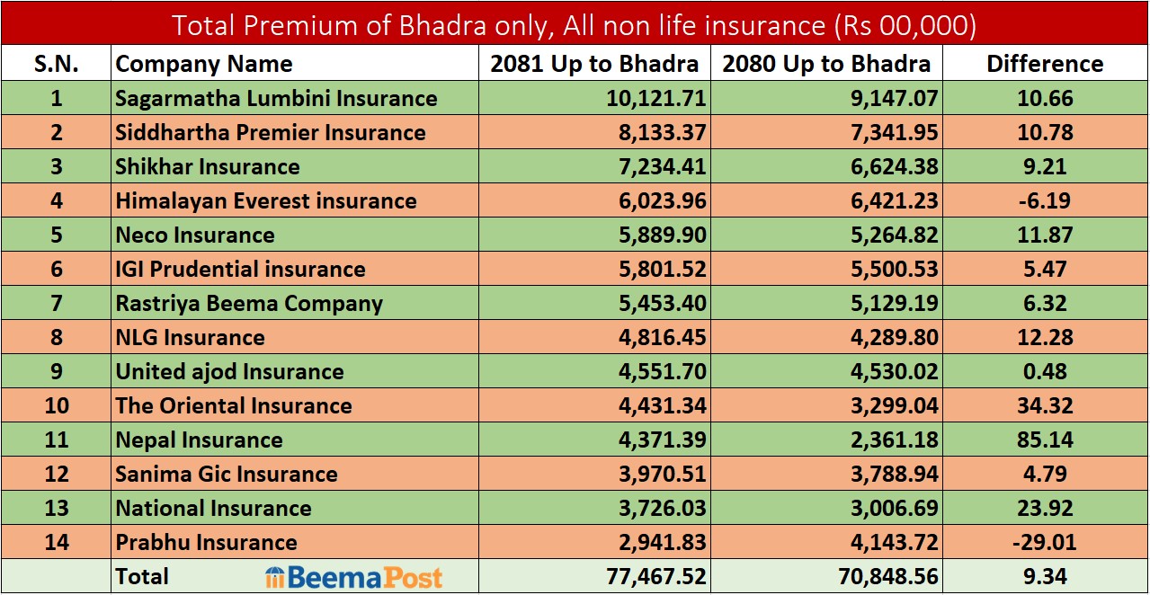दुई महिनामा प्रथम बीमा शुल्क ३१% ले बढ्यो, राष्ट्रिय जीवन बीमाको उत्कृष्ट बृद्धि, अन्यको अवस्था कस्तो ?