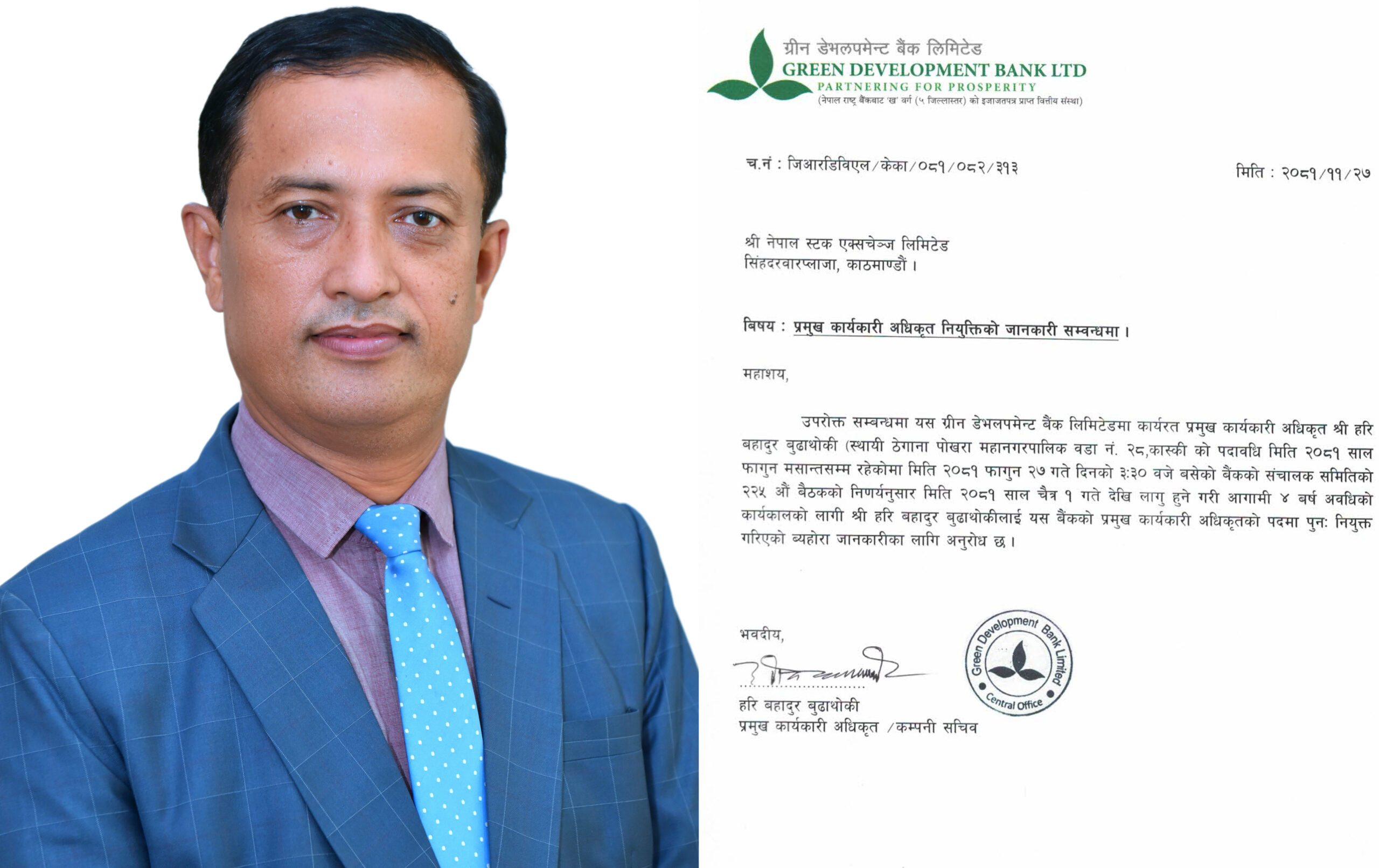 ग्रीन डेभलपमेन्ट बैंकको सीईओमा हरि बहादुर बुढाथोकी पुनः नियुक्त
