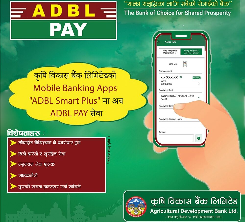 कृषि विकास बैंकको मोबाईल एपमा ‘एडीबीएल पे’ सुविधा