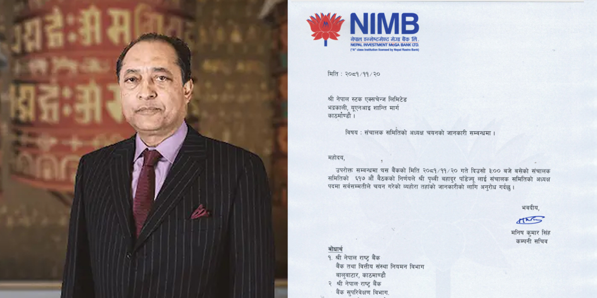 नेपाल इन्भेष्टमेन्ट मेगा बैंकको अध्यक्ष पृथ्वी बहादुर पाँडे दोहोरिए