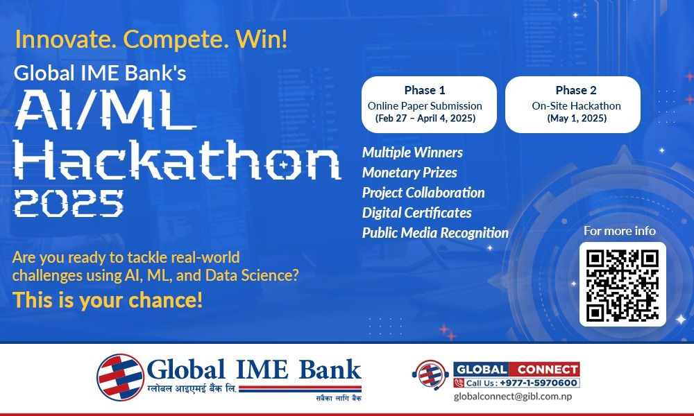 काठमाडौँ । ग्लोबल आइएमई बैंक लिमिटेडले पहिलो पटक आर्टिफिसिएल इन्टेलिजेन्स (एआई) र मेसिन लर्निङ (एमएल) सम्बन्धी ग्लोबल आइएमई एआई एमएल ह्याकाथन आयोजना गर्ने भएको छ । बैंकले प्रविधिमा रुची राख्ने विद्यार्थी, स्टार्टअप, डेभलपर, डेटा वैज्ञानिक तथा अनुसन्धानकर्ताहरुलाई लक्षित गर्दै...