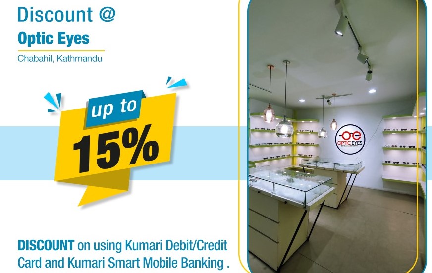 काठमाडौँ । कुमारी बैंक लिमिटेड र अप्टिक आइज चाबहिलबीच बैंकका ग्राहकहरुलाई अप्टिक आइजबाट प्रदान गरिने विभिन्न सेवाहरुमा विशेष छुट प्रदान गर्ने सम्झौता भएको छ । यस सम्झौता बमोजिम अप्टिक आइजबाट प्रदान गरिंदैआएका सेवाहरुमा ग्राहकहरूलाई फ्रेम र सनग्लासहरुमा १५ प्रतिशत,...