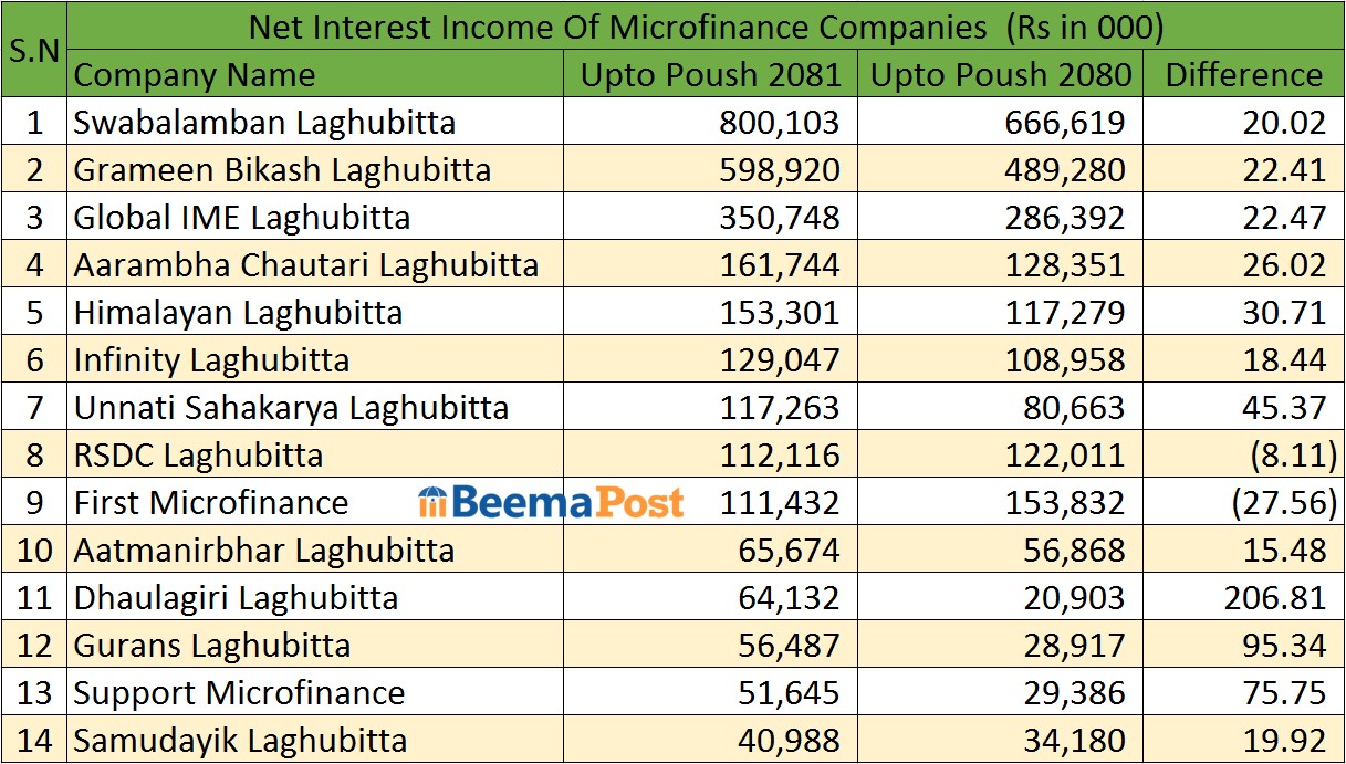 लघुवित्तको ब्याज आम्दानीमा उल्लेख्य बृद्धिः दोस्रो त्रैमासमा कुनले कति कमाए ? (तथ्यांकसहित)