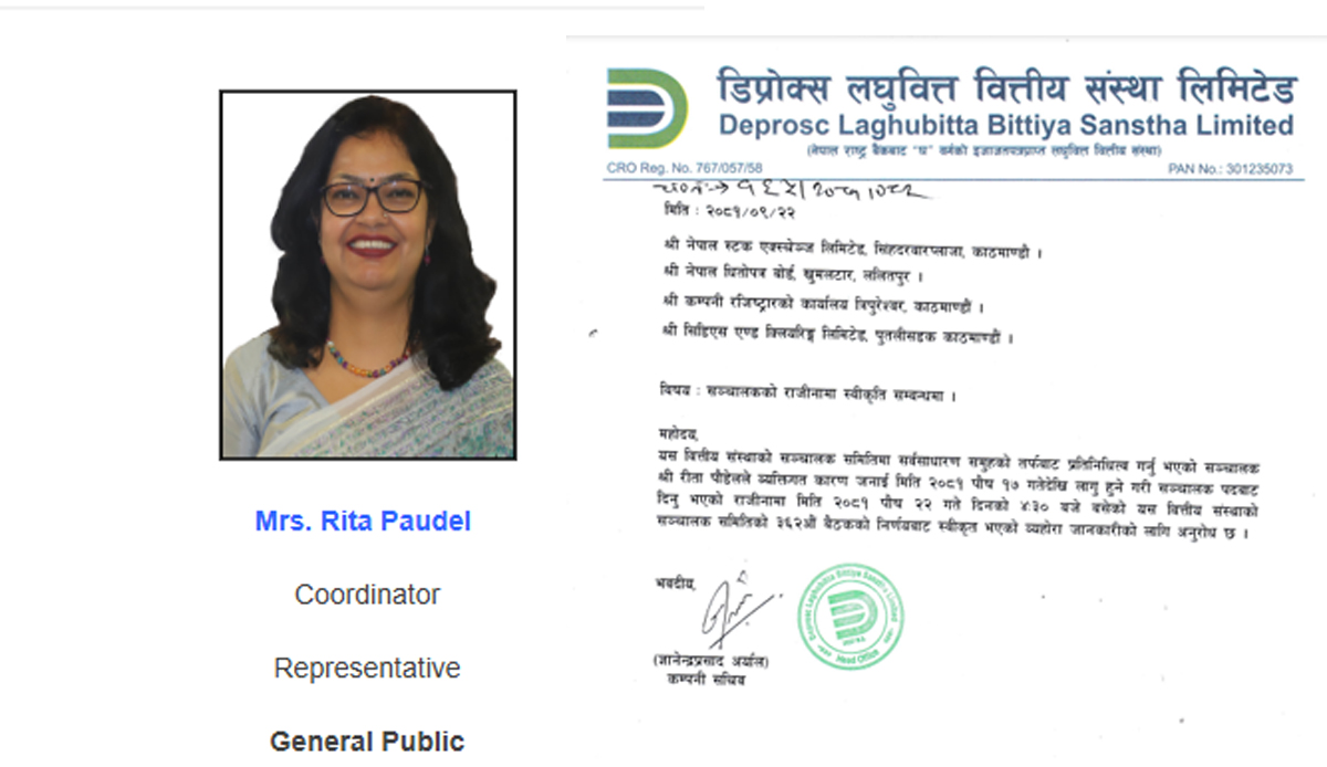 डिप्रोक्स लघुवित्तकी सञ्चालक रीता पौडेलको राजिनामा स्वीकृत