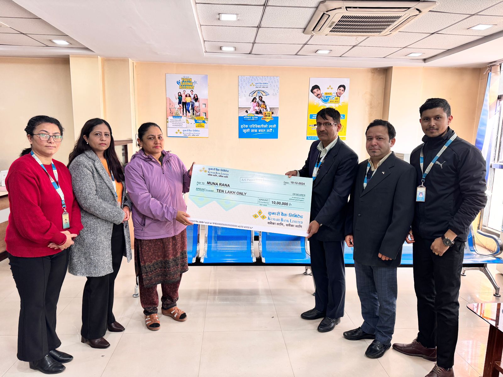 कुमारी बैंकद्वारा १० लाख रुपैयाँ बीमा रकम भुक्तानी