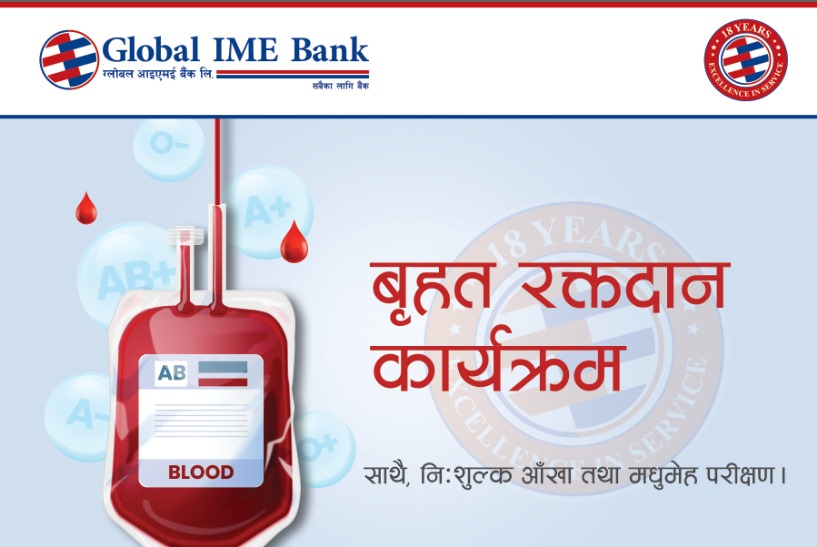 ग्लोबल आइएमई बैंकको १८औं वार्षिकोत्सवको अवसरमा ७५७ जनाले गरे रक्तदान
