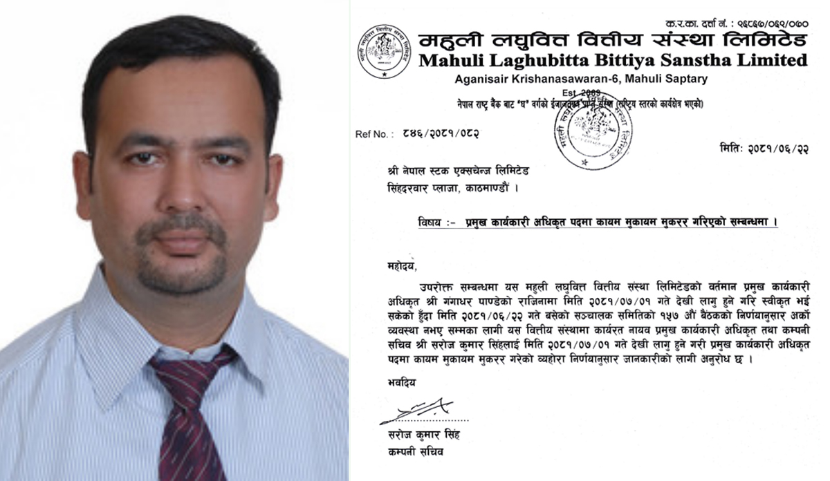 महुली लघुवित्तको सीईओमा सरोज कुमार सिंह नियुक्त