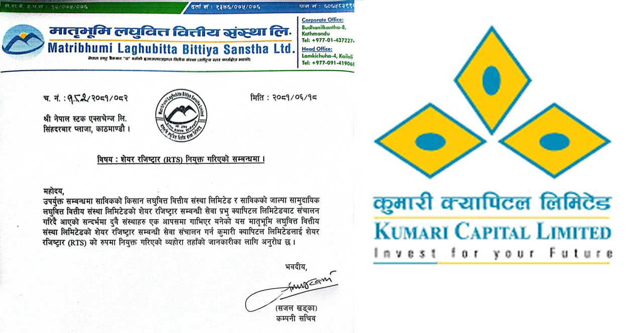 मातृभूमि लघुवित्तको शेयर रजिष्ट्रारमा कुमारी क्यापिटल नियुक्त