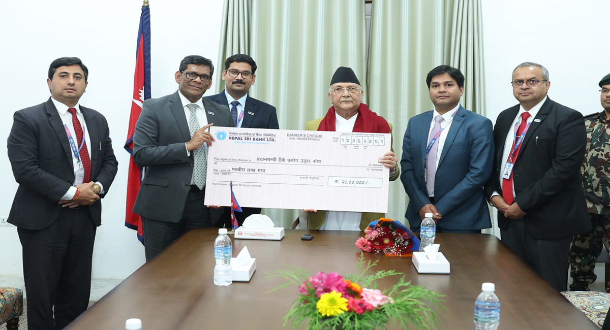 बाढीपहिरो पीडितका लागि एसबीआई बैंकद्वारा प्रधानमन्त्री राहत कोषमा २५ लाख सहयोग