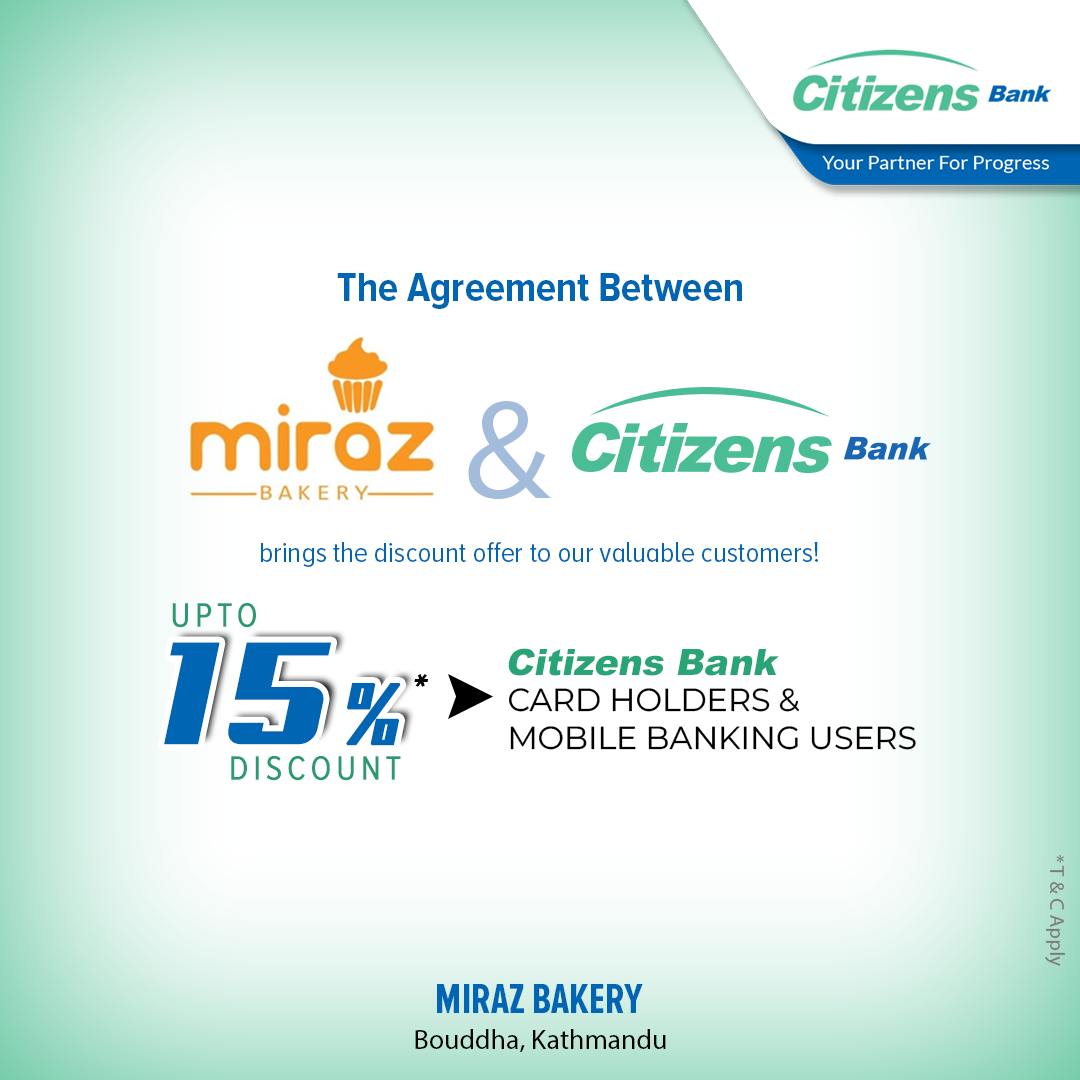 सिटिजन्स बैंकका ग्राहकलाई मिराज बेकरीमा विशेष छुट