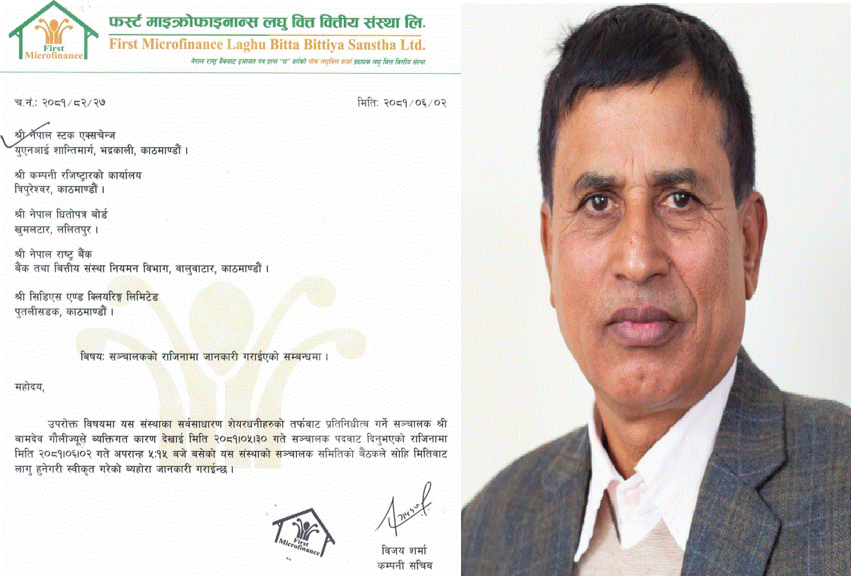 फर्स्ट माइक्रोफाइनान्स लघुवित्तमा सञ्चालकको राजिनामा