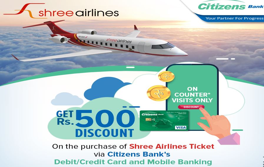 सिटिजन्स बैंकका ग्राहकलाई श्री एयरलाइन्सको टिकट खरिदमा छुट