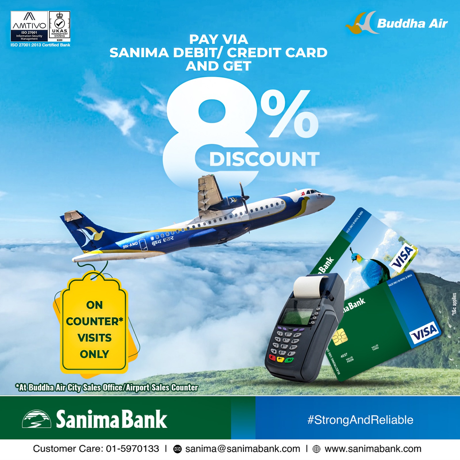 सानिमा बैंकका ग्राहकहरुलाई बुद्ध एयरमा विशेष छुट