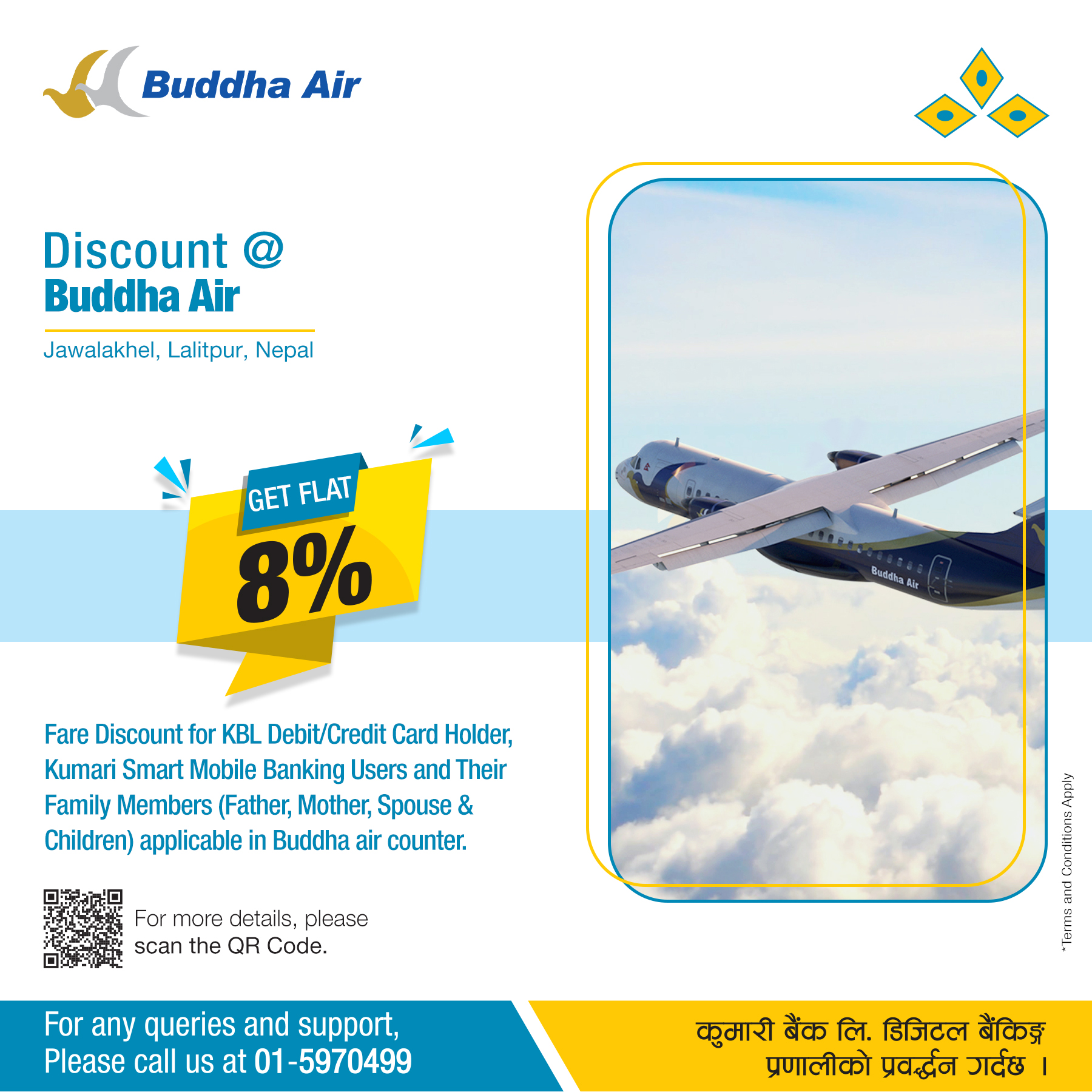 कुमारी बैंकका ग्राहकले बुद्ध एयरबाट यात्रा गर्दा टिकटमा ८ प्रतिशत छुट