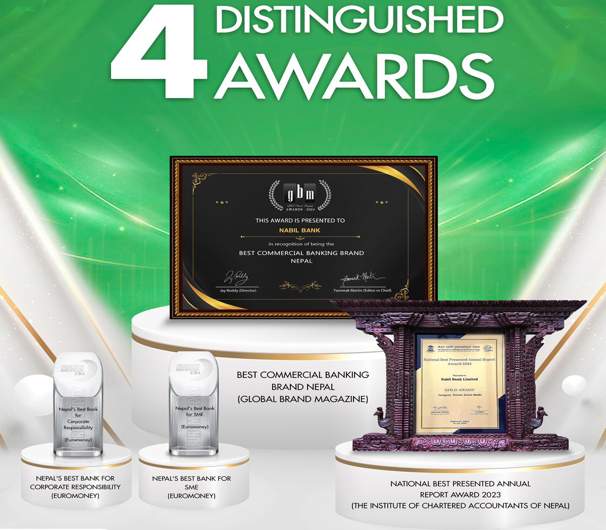 नबिल बैंक एकैसाथ तीन अन्तर्राष्ट्रिय र एक राष्ट्रिय अवार्डबाट सम्मानित