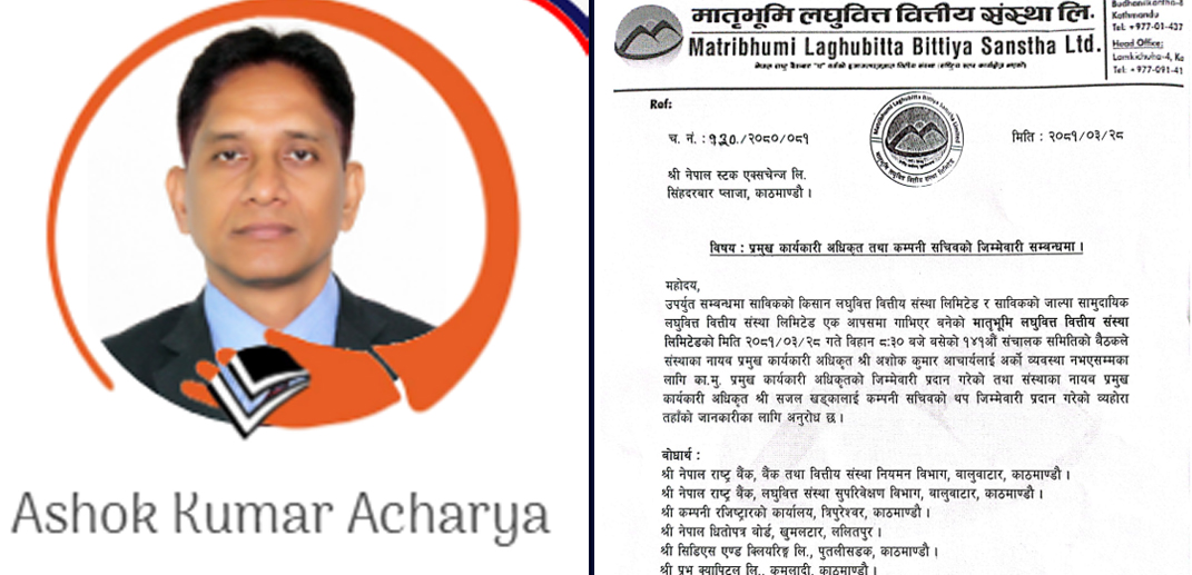मातृभूमि लघुवित्तको सीईओमा अशोक कुमार आचार्य
