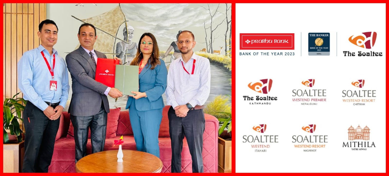 काठमाडौँ । काठमाडौँ स्थित द सोल्टि होटेल ग्रुप र प्रभु बैँक लिमिटेड बीच विशेÈ छुट सम्बन्धि समझदारीपत्रमा हस्ताक्षर भएको छ । जेठ १३ गतेका दिन बैँकका तर्फबाट प्रमुख बजार अधिकृत रबिन्द्र ढकाल एवम् प्रदेश प्रमुख सांग्रीला श्रेष्ठ तथा सोल्टि...