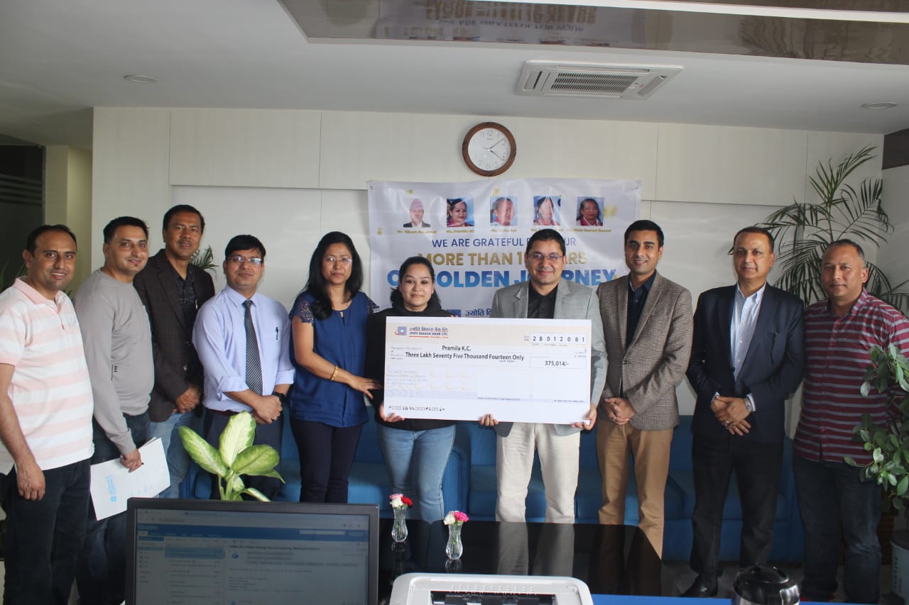 काठमाडौँ । ज्योति विकास बैंकले लामो समयसम्म सेवारत कर्मचारीहरूलाई अनुकरणीय सेवा, समर्पण र योगदानका लागि सम्मान गरेको छ । बैंकको उद्देश्य र ध्येय प्राप्तिको लागि स्थापित मूल्य मान्यताहरुको जडमा बैंकको परिवर्तनको ज्योति फैलाउने संकल्पमा १५ वर्षसम्म अनवरत रुपमा सहयात्रा...