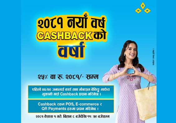 काठमाडौँ । कुमारी बैंक लिमिटेडले नयाँ वर्ष वि.सं. २०८१ को उपलक्ष्यमा विशेष क्यासब्याक अफर घोषणा गरेको छ । यस योजना अन्र्तगत पिओएस भुक्तानी र अनलाइन कारोबारका लागि कुमारी बैंकको डेबिट वा क्रेडिट कार्ड प्रयोग गर्ने ग्राहकहरूले २०८१ रुपैयाँ वा...