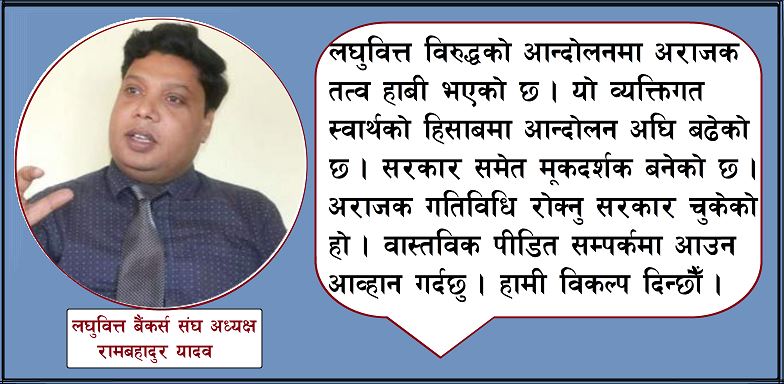 लघुवित्तको योगदान धेरै छ, विरोध मात्रै नगरौं– वार्ताद्धारा नै समाधान दिनुपर्छः अध्यक्ष यादव