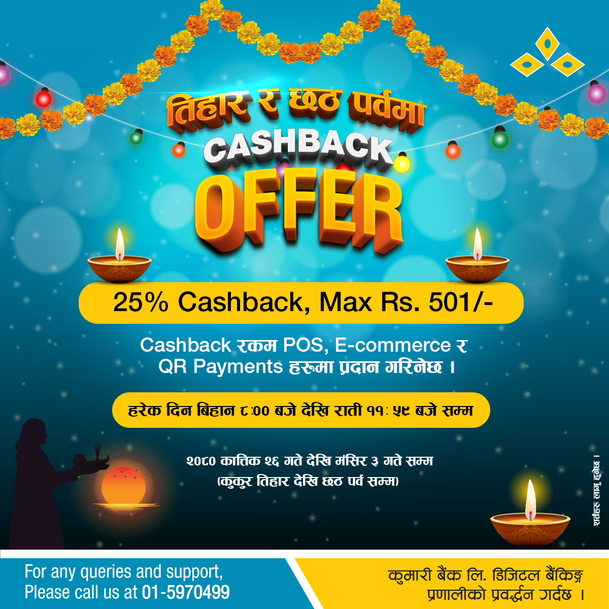 कुमारी बैंकको ‘तिहार र छठ पर्वमा क्यासब्याक अफर’ योजना सार्वजनिक