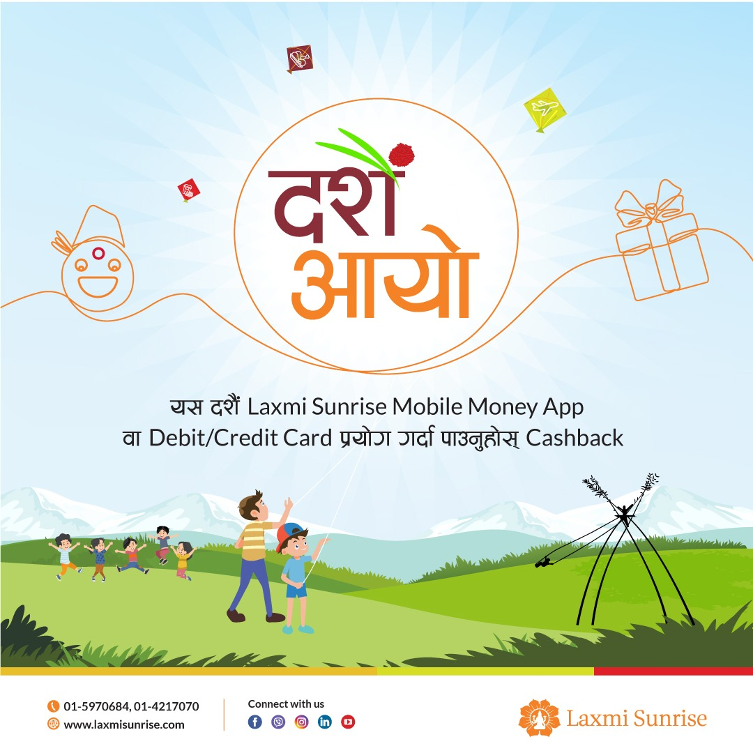 लक्ष्मी सनराइज बैंकको ‘दशैंआयो’ योजनाः मोबाइल मनि, डेबिट–क्रेडिट कार्ड प्रयोग गर्दा विशेष अफर !