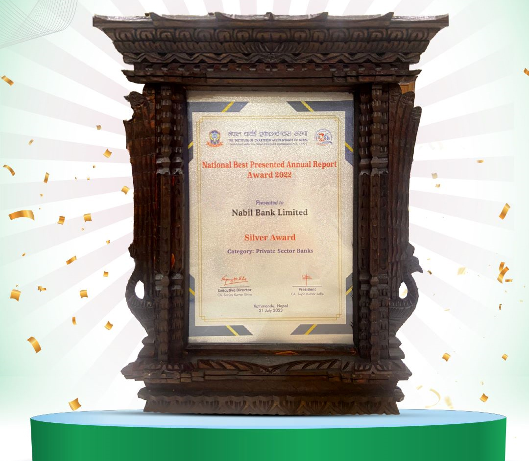 नबिल बैंक राष्ट्रिय उत्कृष्ट वार्षिक प्रतिवेदन अवार्डबाट सम्मानित