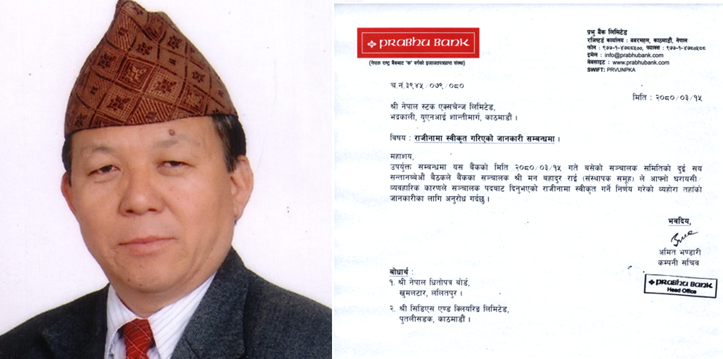 प्रभु बैंकका सञ्चालक मन बहादुर राईको राजिनामा स्वीकृत