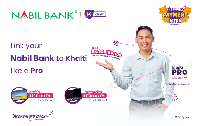 नबिल बैंक खाता खल्तीमा लिङ्क गर्दा रु. १०० बोनस प्राप्त र ४३ इन्चको स्मार्ट टिभी जित्ने मौका