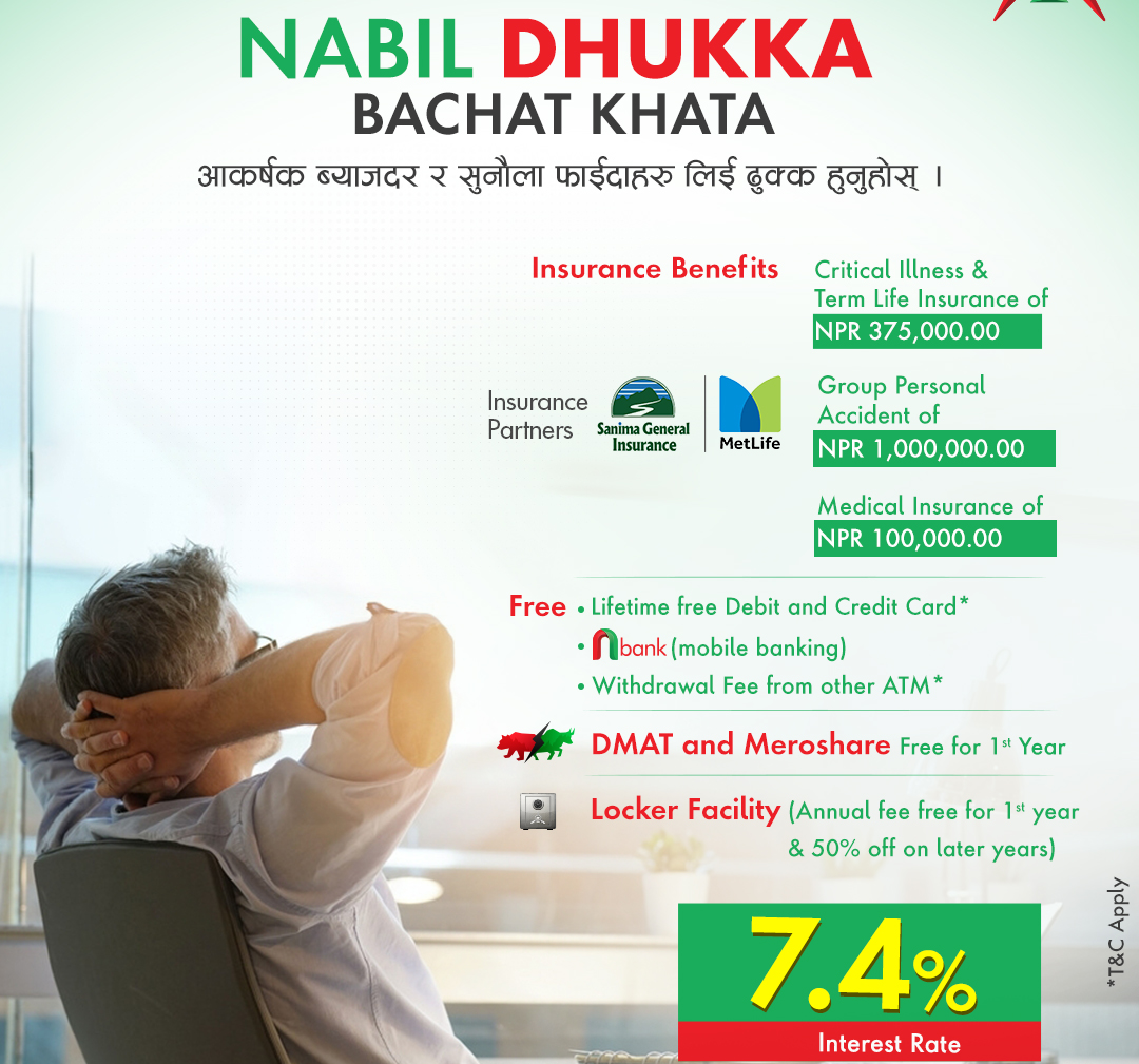 आकर्षक सुविधासहित नबिल बैंकले ल्यायो ‘नबिल ढुक्क बचत खाता’