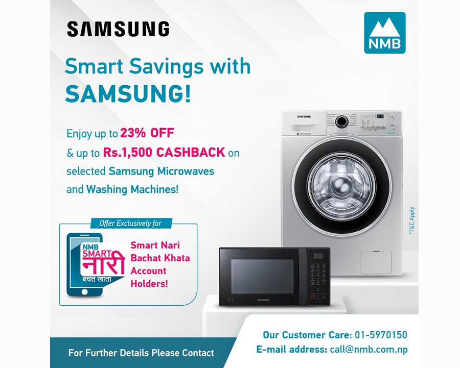 एनएमबि बैंकका स्मार्ट नारी बचत खाताका ग्राहकहरुलाई सामसुङ इलेक्ट्रोनिक्स सामानमा २३% सम्म छुट