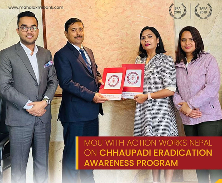 काठमाडौं । महालक्ष्मी विकास बैंकले सुदुरपश्चिमका अछाम, बाजुरा, बझाङ, डोटी, दार्चुला, बैतडी, डडेलधुराका ग्रामीण क्षेत्रहरुमा प्रचलित छाउपडी प्रथा उन्मूलनकालागि एक्सन वर्क्स नेपालद्वारा साञ्चालित छाउपडी एण्ड मेन्स्रुयल हेल्थ हाइजिन म्यानेजमेन्ट प्रोजेक्टलाई सफल बनाउन आर्थिक सहयोग प्रदान गर्ने भएको छ ।...