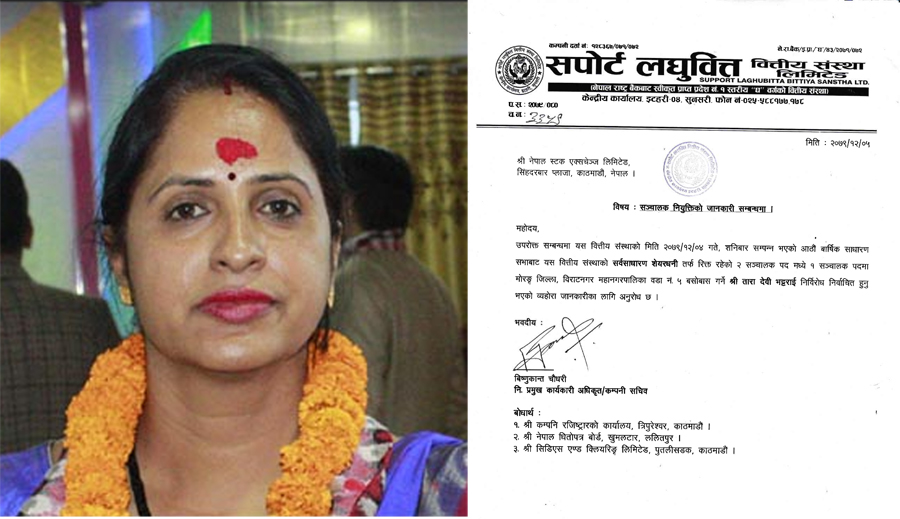 सर्पोट लघुवित्तको संचालकमा तारा देवी भट्टराई चयन