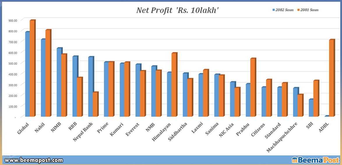 साउनमा वाणिज्य बैंकको नाफा ८ अर्ब ३८ करोडः ११ वटाको घट्यो, कुनको अवस्था कस्तो? (तथ्याङ्कसहित)