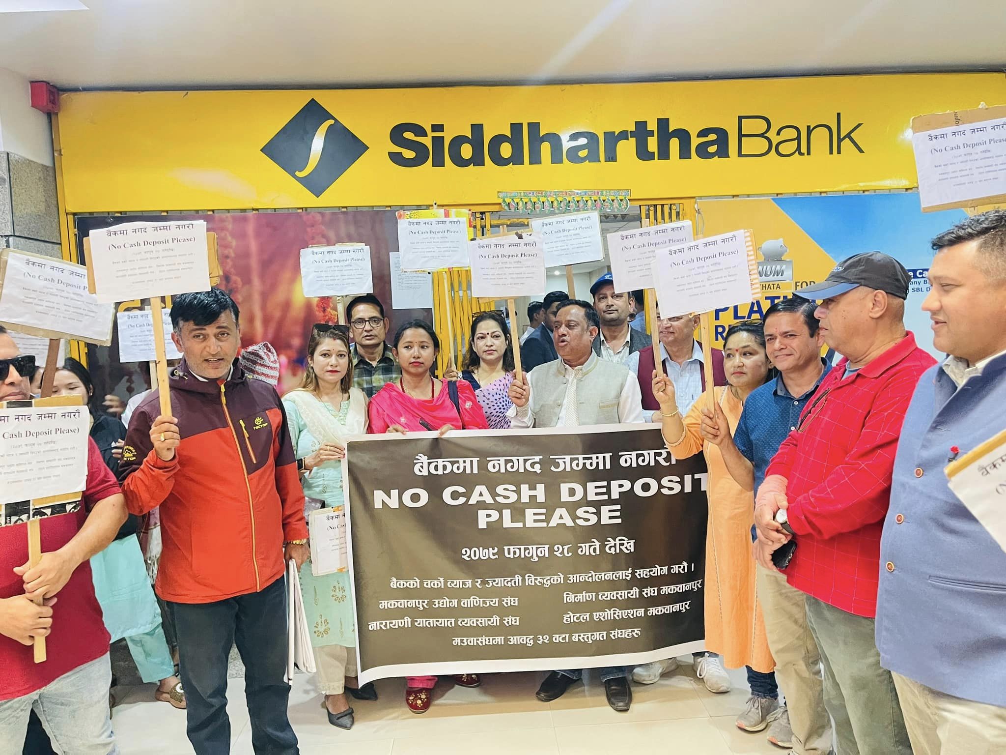 बैंकहरुको ब्याजदर बृद्धिविरुद्ध बालुवाटारस्थित राष्ट्र बैंक अगाडि व्यवसायीहरुको धर्ना