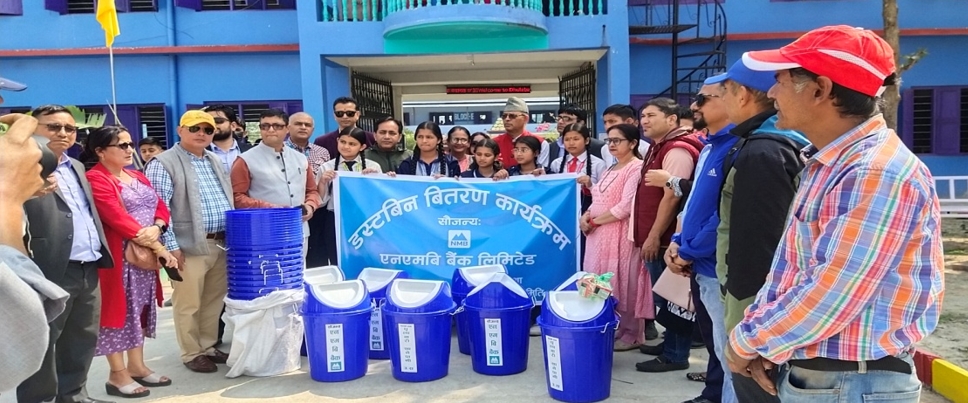 एनएमबि बैंकद्धारा ९ वटा सामुदायिक विधालयमा १०० वटा डस्टबीन बितरण
