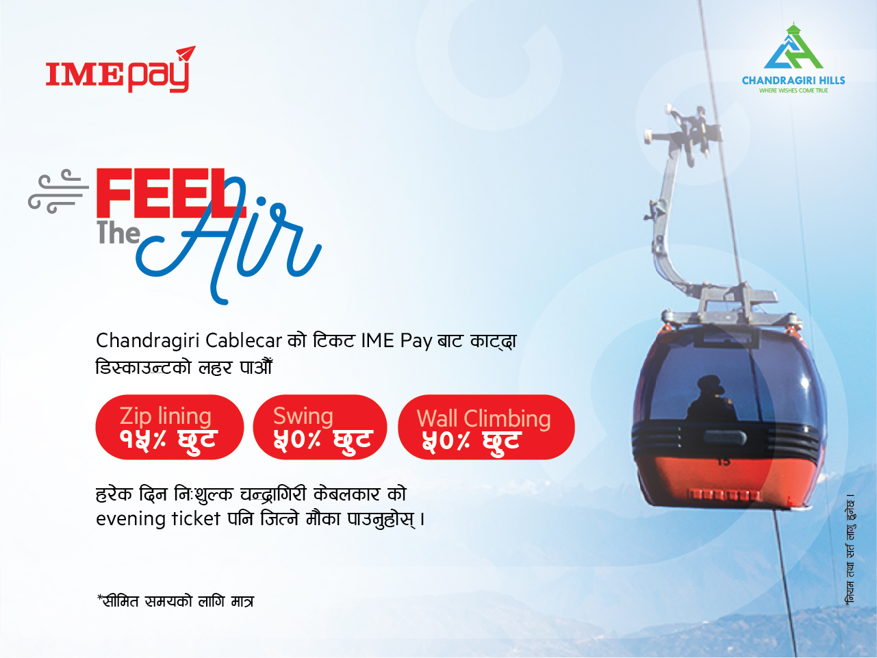 आइएमई पे र चन्द्रागिरि हिल्सबीच प्रणय दिवसको अवसरमा फील द एअर अफरको लागि सम्झौता