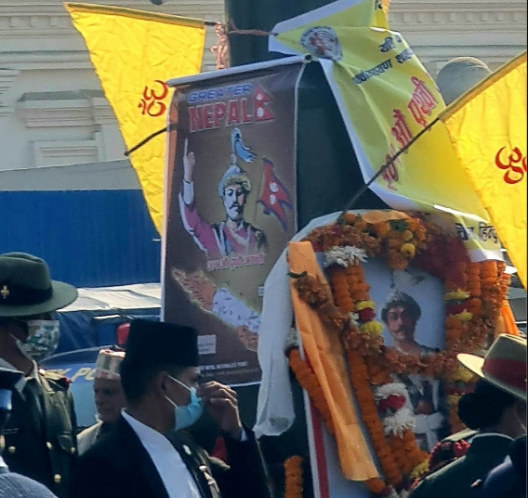काठमाडौं । पुस २७ गते राष्ट्रनिर्माता पृथ्वीनारायण शाहको ३०१ औँ जन्म जयन्ती तथा राष्ट्रिय एकता दिवसका अवसरमा ग्रेटर नेपाल राष्ट्रवादी मोर्चाले सिंहदरबारको पश्चिमतर्फको पृथ्वीनारायण शाहको पूर्ण कदको सालिकमा ग्रेटर नेपालको नक्सा राखेको छ । पृथ्वीनारायण शाहको सालिकमा राष्ट्रपतिले पुष्पगुच्छा...