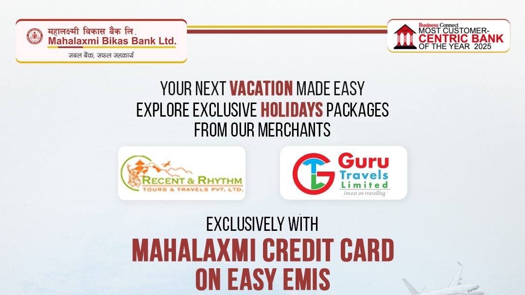 चाडपर्वलाई लक्षित गर्दै महालक्ष्मी विकास बैंकद्धारा क्रेडिट कार्ड मार्फत टुर प्याकेज खरिद गर्न सकिने योजनाको सुरुवात