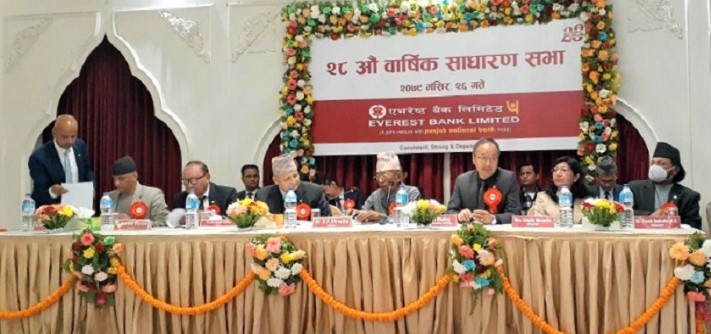 एभरेष्ट बैंकको बार्षिक साधारणसभा सम्पन्न, २०.६८ प्रतिशत लाभांश पारित