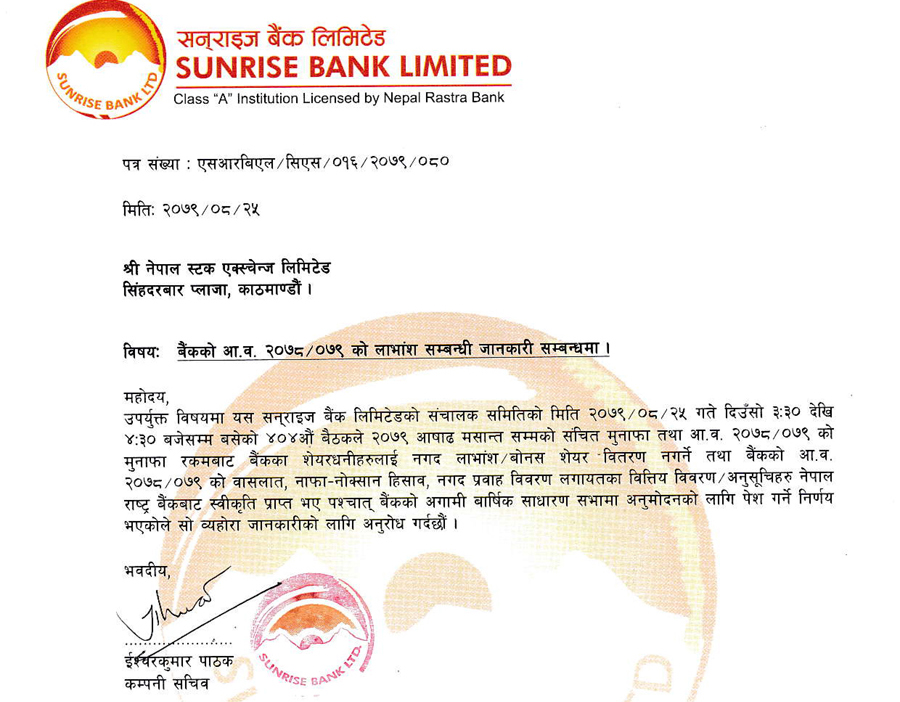 सनराइज बैंकद्धारा लाभांश नबाड्ने निर्णय, लाखौं शेयरधनीको हात रित्तै