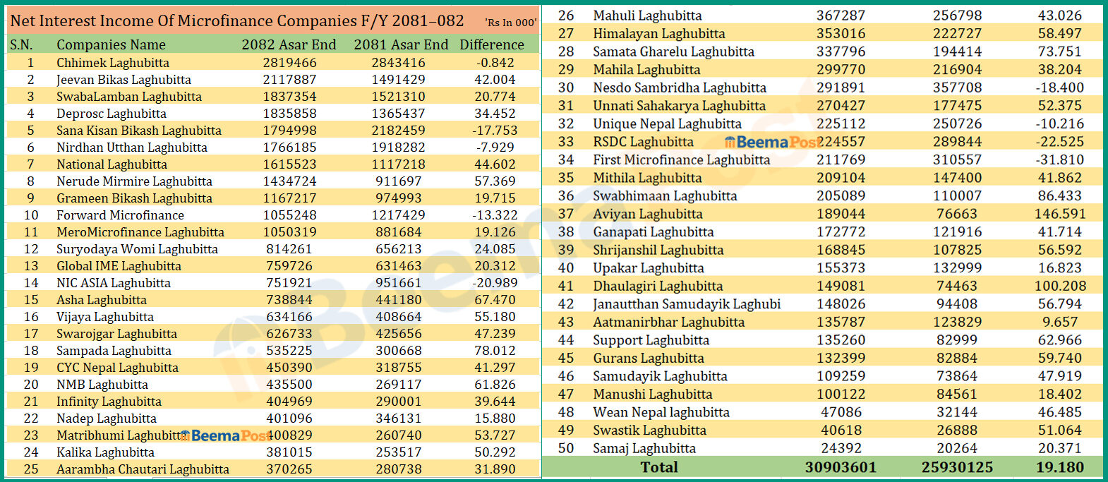 वर्षदिनमा लघुवित्तहरुको खुद ब्याज आम्दानी १९%ले बढेर ३१ अर्ब पुग्यो, कुनको कति ? (तथ्यांकसहित)