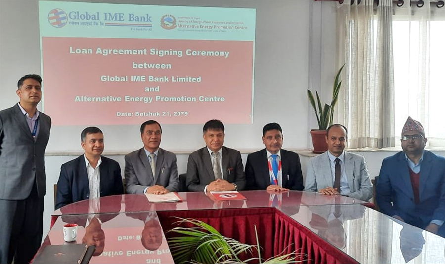 ग्लोबल आइएमई बैंक र वैकल्पिक उर्जा प्रबर्द्धन केन्द्रबीच ऋण उपलब्ध गराउने सम्बन्धी सम्झौता