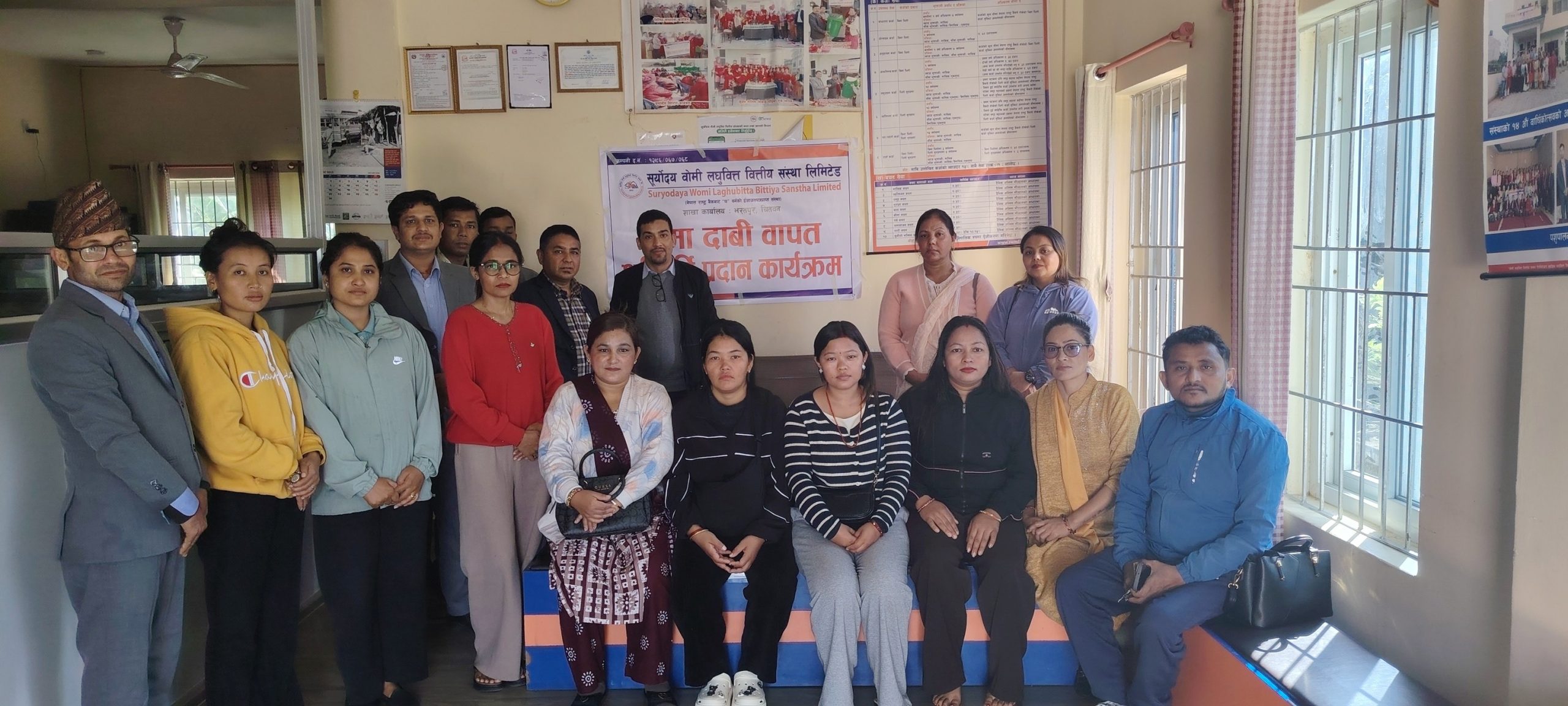 सूर्योदय वोमी लघुवित्तले सदस्यलाई बीमा दाबीबापत ५ लाख २५ हजार भुक्तानी