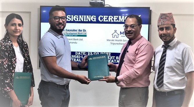 काठमाडौं । सांग्रिला डेभलपमेन्ट बैंक लिमिटेड र मेराकि हेल्थ सोलुशनबीच छुट सम्बन्धी सम्झौता भएको छ । बैंकले ग्राहक, कर्मचारी र तथा कर्मचारी पारिवारलाई स्वास्थ्य सेवामा विशेष छुट दिने गरि समझदारी भएको हो । उक्त सम्झौता पत्रमा बैंकका प्रमुक संचालक...
